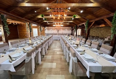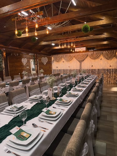Vállaljuk lakodalmak, születésnapok és keresztelők teljes körű étkeztetését is rendezvénytermünkben.