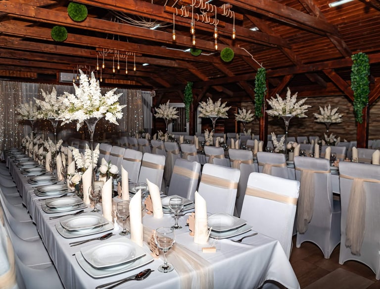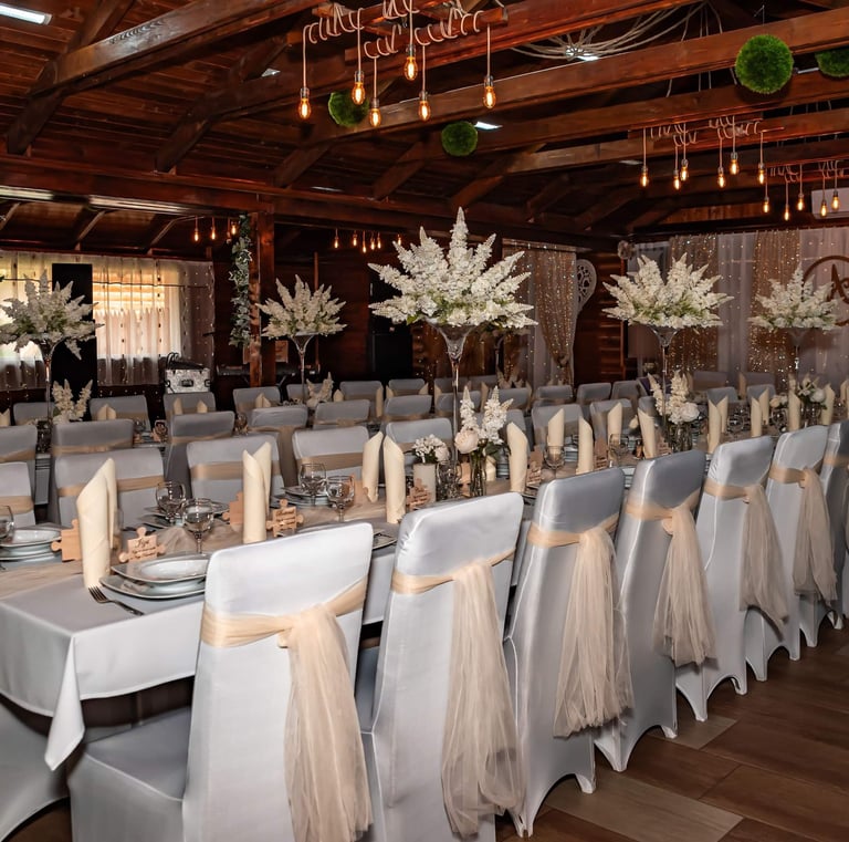 Elegáns rendezvénytermünk tökéletes választás esküvők, családi ünnepek és céges események lebonyolítására. Tágas, stílusosan berendezett termeinkkel és profi kiszolgálásunkkal felejthetetlen élményt garantálunk.